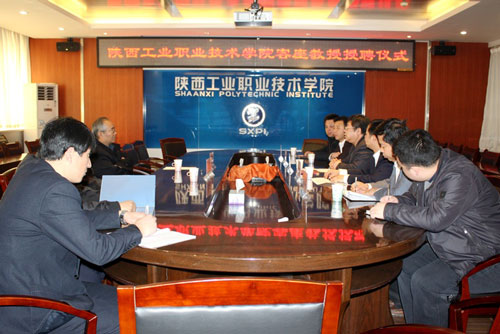 bst365卢庆林经理主持仪式,党委书记邓志辉同志为韩刚同志颁发了客座教授聘任证书,并作了热情洋溢的讲话,感谢多年来韩经理和省机械研究院对陕西工院的支持与帮助,今天,bst365聘任韩刚经理为客座教授,是两院之间更近一步的合作,希望在科研方面,韩教授多多指导,为bst365和陕西工院的发展献计献策,对韩经理能在百忙之中,来到本院接受聘任,表示衷心感谢!随后,韩刚经理表示,陕西工院发展很快,确有实力,能为公司作贡献是非常荣幸的事情,愿尽力为公司的科研和教育事业作出奉献。