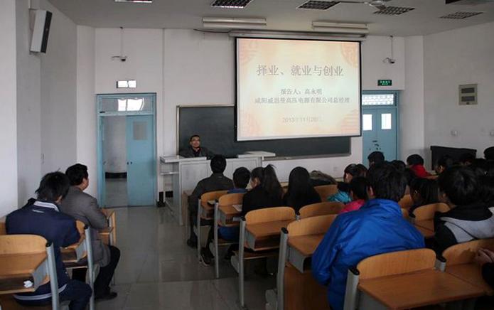 11月26日下午,公司91级优秀员工——咸阳威思曼高压电源有限公司总经理高永明做客企业经理人大讲堂,在祟文西楼203多媒体教室为bst365200余名员工作了“就业择业与创业”的专题报告。公司党总支书记万可顺、校企合作处副处长郝军、bst365学工办主任白国政参加了报告会,报告会由万可顺主持。